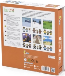 Otkrijte zabavni set za male kreatore: drvena magnetska igra oblačenja Viga – medvjeđa obitelj s 54 dijela. Djeca od 3 godine kombiniranjem odjeće i izraza lica vježbaju finu motoriku, koordinaciju oko–ruka i maštu. Kompaktno pakiranje 21,5 × 21,5 × 4,5 cm lako se prenosi i posprema.