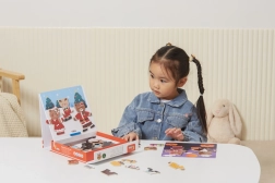 Ovaj kreativni set donosi omiljenu drvenu magnetsku igru oblačenja s motivom medvjeđe obitelji. Djeca mogu slagati različite outfite i izraze lica, iskušavati profesije i svakodnevne situacije te stvarati vlastite priče. 54 magnetska dijela nude mnoštvo kombinacija za sate zabave.