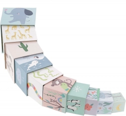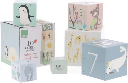 Otkrijte zabavnu edukativnu igračku za najmlađe: 10 čvrstih kartonskih kocaka s ilustracijama životinja i brojevima 1–10 dizajnerice Sarah Betz. Djeca od 2 godine kroz igru vježbaju brojanje, prepoznavanje boja i životinja te koordinaciju oko–ruka. Lagan, ali izdržljiv set od ekološkog kartona lako se slaže u visoku kulu i umeće jedan u drugi za štedljivo odlaganje.