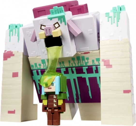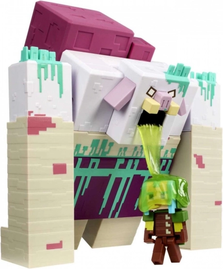Istraži uzbudljivu zabavu nadahnutu igrom Minecraft Legends i „progutaj površinu” s ovom velikom napadačkom vitkom figuricom Devastatora. Set uključuje zastrašujućeg Devastatora koji pljuje sluz i figuricu Čuvara spremnog braniti zemlju. Pričvrsti micelij na Devastatora, napuni sluzi i pripremi se za napad. Zatim pritisni micelij kako bi izbacio sluz na priloženog Čuvara. Obožavatelje će oduševiti autentičan izgled figurica nadahnutih igrom Minecraft Legends i velika veličina negativca. Boje i ukrasni elementi mogu se razlikovati.