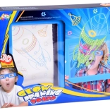 Osvijetljena ploča, 3 kartice s crtežima (6 motiva), 4 neonska markera, krpica, 3D naočale, vakuumske čašice