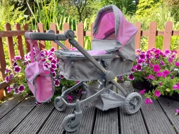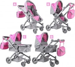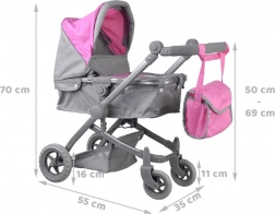 Stilska kolica za lutke s mogućnošću pretvorbe u duboki ili sportski način nude djeci realističnu igru brige. Imaju lagani okvir, okretna kotača, podesivu ručku i sigurnosne pojaseve. U kompletu je i praktična torba za dodatke.