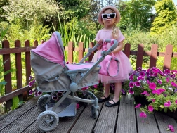 Za maksimalnu udobnost pri igri tu su podesiva košara, preklopna ručka naprijed/natrag i sklopiva kapuljača. Dva prednja okretna kotačića i puni EVA kotači osiguravaju glatku vožnju u domu i na otvorenom. U prostranu košaru i priloženu torbu pospremite sve dodatke za lutku.