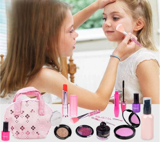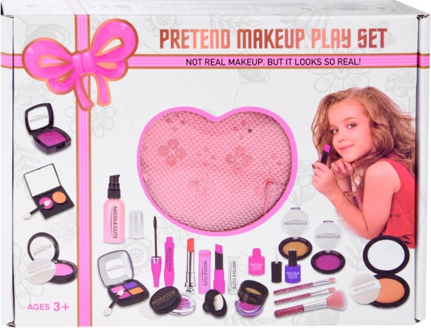 Set sadrži razne vrste šminke poput sjenila za oči, ruževa i rumenila, koji su netoksični i prikladni za nježnu dječju kožu.