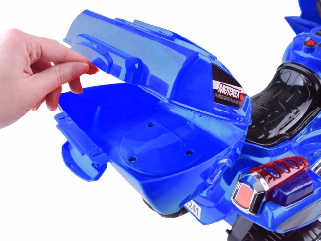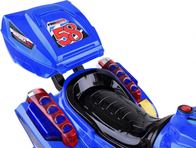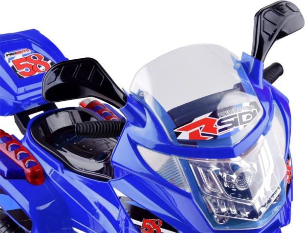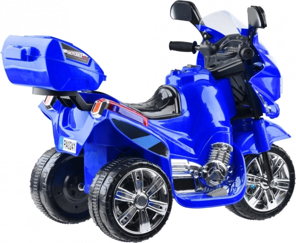 Sportski dječji motor na baterije s šarenim LED osvjetljenjem sprijeda, sa strane i u kotačima pruža odličnu zabavu i bolju vidljivost. Zahvaljujući kompaktnim dimenzijama idealan je za stan i terasu, ima električni kočni sustav, zvuk motora i vesele melodije te praktičan stražnji koferić za sitnice.