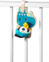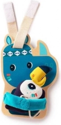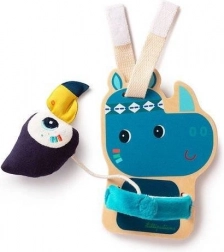 Drvena igračka u obliku nosoroga koja drži mekanog prijatelja tukana, dizajnirana je za poticanje osjetilne percepcije i poticanje dječje znatiželje.