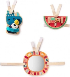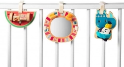 Svaka igračka ima praktični suhi zatvarač za jednostavno pričvršćivanje na kolica, autosjedalicu ili dječji krevetić. Osim toga, ove igračke pomažu u razvoju koordinacije ruku i očiju te osjetilne percepcije kroz dodir, vid i sluh.