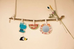 Zrcalo s drvenim okvirom i motivom lava idealno je za vizualnu stimulaciju i podršku istraživačkih vještina malih dječaka.