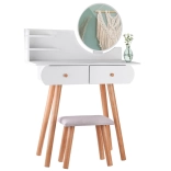 Funkcionalna minimalistička toaletna konzola u skandinavskom stilu može postati sjajan dodatak djevojačkoj sobi. Bijela toaletna konzola s okruglim zrcalom, prostranim ladicama i udobnom stoličicom bit će idealna za nanošenje make-upa, češljanje kose, uređivanje odjeće pa čak i pisanje dnevnika.
