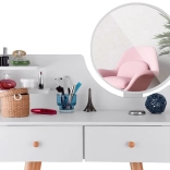 Skandinavski stil, kojeg su dizajneri zavoljeli još prije godina, savršeno se uklapa u svaku minimalističku sobu. Suvremena kućanstva sve se češće okreću ovom stilu namještaja i cijene njegov minimalistički karakter i neutralne boje. Zato se ova toaletna konzola savršeno uklapa u taj ugođaj. Njezin jednostavan dizajn i svijetle boje omogućit će joj da se uklopi u svaku prostoriju. Namještaj je izrađen isključivo od drvene MDF ploče. Namještaj se sastavlja samostalno i dolazi s detaljnim slikovnim priručnikom.