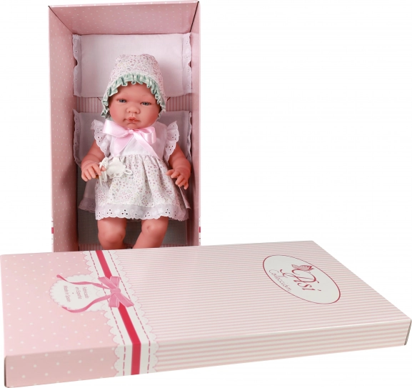 Lutka je lijepo odjevena u bijelu čipkastu haljinicu s kapicom te dolazi s jastučićem, pokrivačem i dudom na lančiću koju je moguće staviti u usta. Prikladna za igru uloga, razvija empatiju, finu motoriku i maštu.