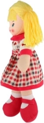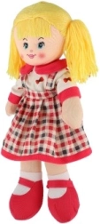 Krpana lutka izrađena je od nježnog i sigurnog tekstila, idealnog za maženje i igru djece.