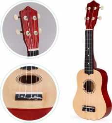 Ukulele je dizajniran tako da bude jednostavan za rukovanje i pogodan za djecu od 3 godine. Predstavlja sjajan način za razvijanje mašte, osjećaja za ritam i koordinacije pokreta. Čvrsta drvena konstrukcija osigurava izdržljivost, a klasičan izgled čini ga stilskim dodatkom svakoj dječjoj sobi.