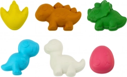 Raznobojni kalupi u obliku dinosaura, jaja i otisaka garantiraju šarolike otiske i originalne pješčane kreacije.