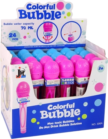 Prozirna bočica s bistrom otopinom ima praktičan, izdužen oblik za lako držanje. Dovoljno je izvaditi štapić, nježno puhati ili mahnuti i odmah nastaju prelijepi, dugini mjehurići. Idealno za proslave, igrališta i obiteljske trenutke.