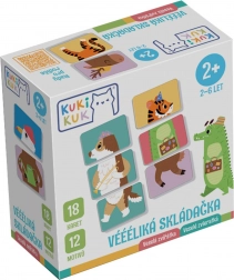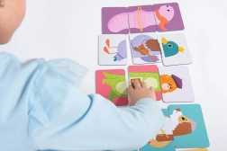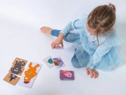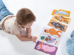 18 obostranih kartica s prikazom 12 životinjica nudi mnogo varijanti slaganja koje će zabaviti djecu na dugo vrijeme.