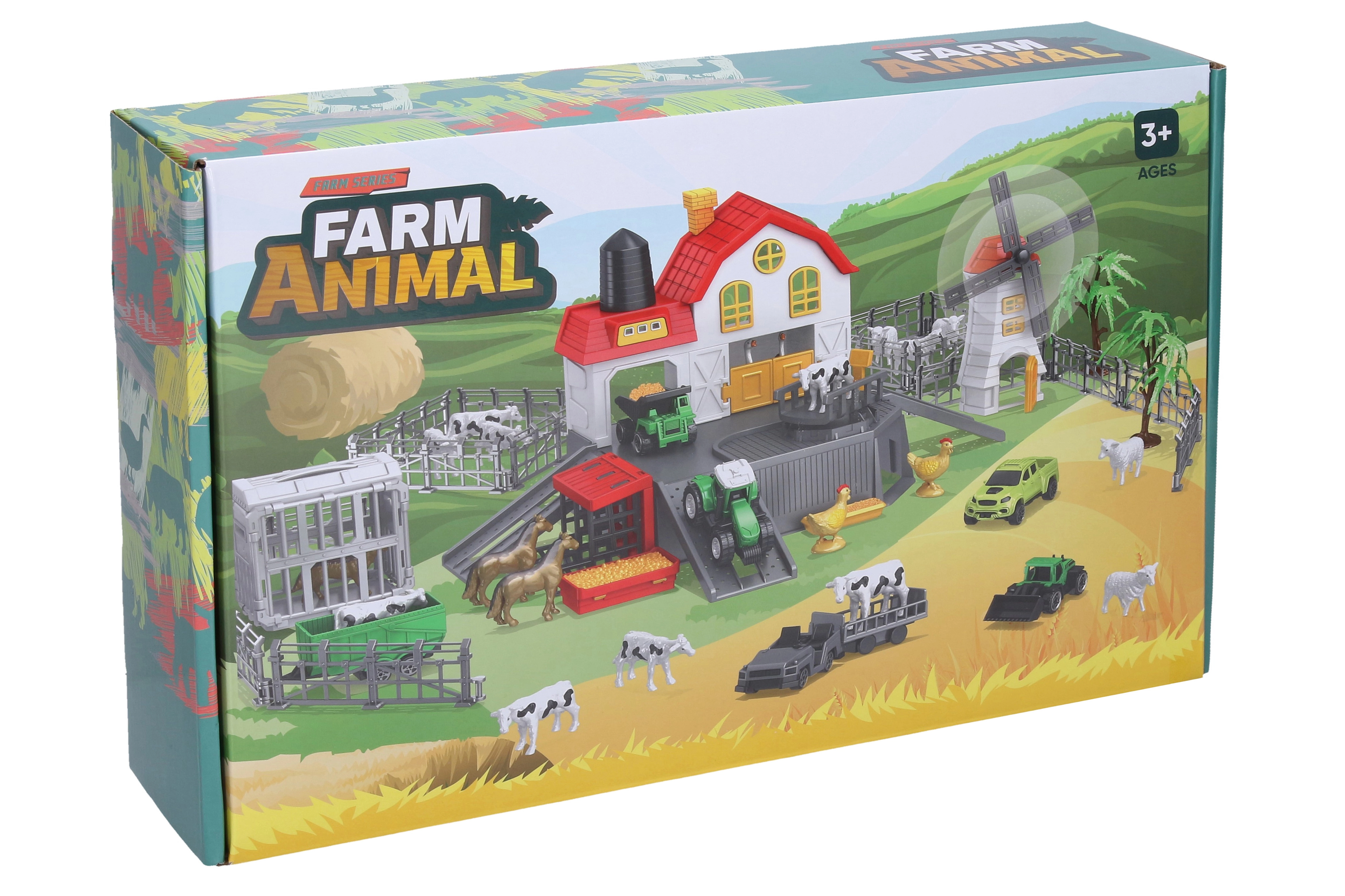 Farma sa životinjama. U kompletu je sve što je prikazano na slikama na ambalaži - farma, mlin, traktor s prikolicom, kiperi, utovarivač, transportno vozilo, ograda, stabla, figurice životinja (konji, kokoši, ovce, koze, pas). Ilustrirane upute za sastavljanje nalaze se na stražnjoj strani ambalaže.