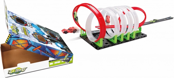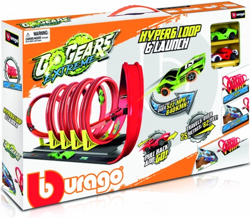 Autostaza Bburago GoGears Extreme: 6 petlji, rampa, 2 brza autića i domet do 25 m. Uključena meta s bodovanjem. Akcijska trkaća zabava za djecu.