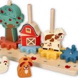 Slagalica 'Luda farma' dizajnirana je kako bi obogatila dječju maštu kroz drvene elemente oslikane živim bojama. Zahvaljujući sastavnim elementima u obliku farme, stabala i životinja, djeca uče kako strateški postavljati dijelove i pretvarati izazove u igru. Igračka je opremljena zupčanicima koji djeci omogućuju otkrivanje principa mehanike.