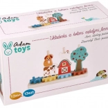 Igračka uključuje različite oblike životinja i stabala, osmišljene u živim bojama kako bi privukle pažnju djece i poticale njihovu kreativnu igru.