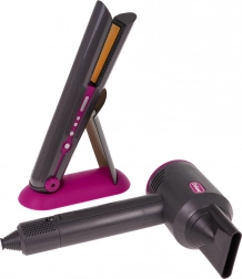 Idealni frizerski set za djecu koja žele postati mali frizeri. Bogato opremljen set sadrži sušilo za kosu s izmjenjivim nastavcima, peglu za kosu, češalj i četku. Sušilo za kosu se napaja s dvije AA baterije (nisu uključene u pakiranju) i proizvodi zvukove kao kod pravog sušenja kose. Pegla svijetli i proizvodi tipične zvukove nakon uključivanja.