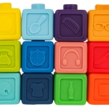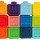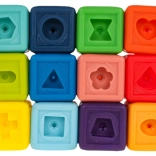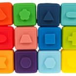 Ovaj svestrani set gumenih kocaka idealan je od prvih dana života. Zahvaljujući mekom, netoksičnom materijalu, kocke su sigurne za grickanje i stiskanje te istodobno potiču senzorno opažanje. Djeca se prirodno uče razlikovati boje i oblike, vježbaju hvat i poboljšavaju koordinaciju ruka–oko.