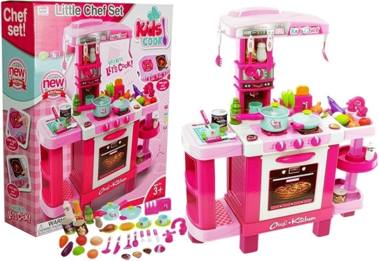 Nabavite svojoj djeci ovu divnu roza dječju kuhinju, koja pruža sate sigurne i stvaralačke zabave. Ovaj veliki kuhinjski set je pravi raj za sve male entuzijaste kuhanja. Sadrži:
