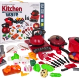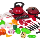 Sanjate li o savršenom kuhinjskom setu za vašu djecu? Ovaj crveni set lonaca s kuhinjom idealan je izbor za djecu od 3 godine. Nudi ukupno 52 različita dijela, uključujući interaktivnu kuhinju, kuhalo za vodu i druge kuhinjske alate.