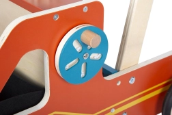 Zupčanici, okretno kolo s ručicom i pomična plava svjetla uvlače djecu u igru te razvijaju koordinaciju ruka–oko i finu motoriku.