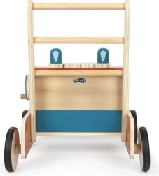 Čvrsta drvena konstrukcija i integrirani kočioni sustav daju djeci sigurnost pri hodu i bržoj vožnji. Četiri široka kotača osiguravaju stabilnost na različitim podlogama.