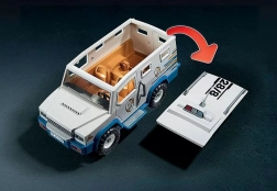 Krenite u potragu za zločincima s legendarnim PLAYMOBIL setom! Ovaj jubilarni specijal povodom 50. obljetnice donosi transporter s novcem, motocikl i figurice s obostrano otisnutim izrazom lica za brzu promjenu uloge policajca u prevaranta. Uklonjivi krov i otvarajuća stražnja vrata osiguravaju lak pristup i mnoštvo mogućnosti za igru.