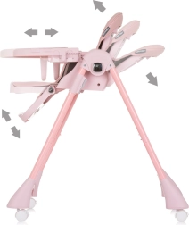 Praktična i stilska hranilica za svakodnevno hranjenje djece do 15 kg. Nudi 8 visinskih razina, podesiv naslon za leđa i oslonac za noge, dupli odvojivi pladanj za lako čišćenje i 4 kotačića za praktično premještanje. Za sigurnost su tu 5-točkasti pojasevi s mekim jastučićima i stabilna konstrukcija prema EN 14988.