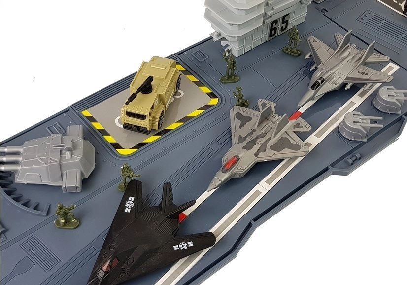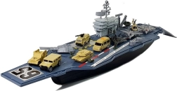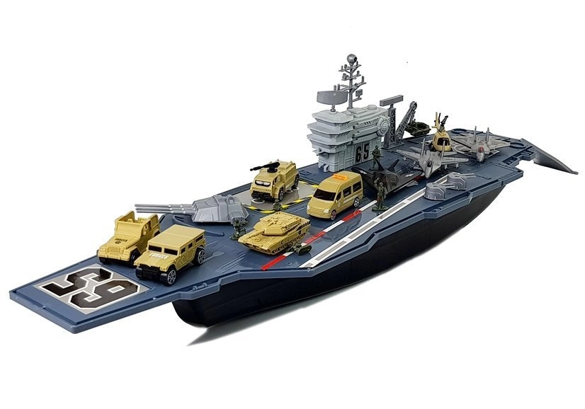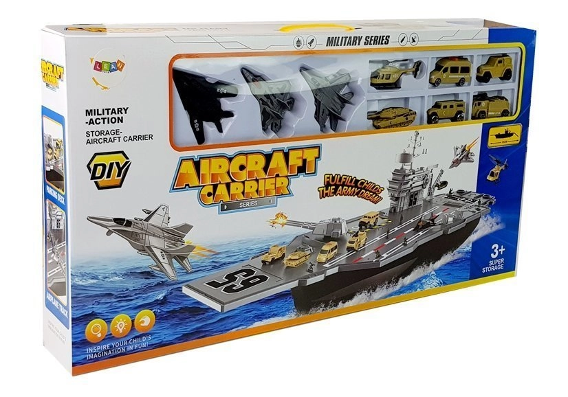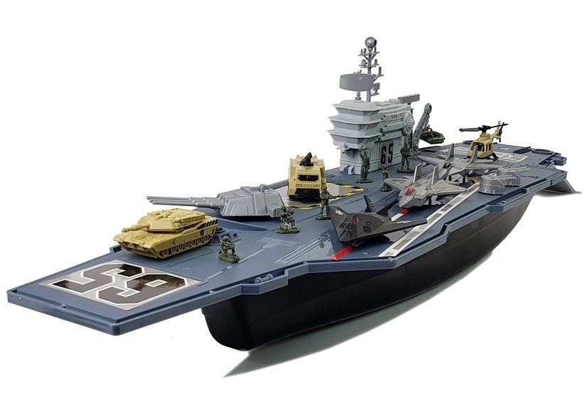 Predstavljamo nosač zrakoplova za djecu koja se rado igraju vojnika, a istovremeno vole brodove, jer je to najbolji dio seta. Set razvija maštu, kreativnost i omogućuje malim vojnicima stvaranje borbenih planova. Isprobajte ga sami – zanimljiva igračka odvest će vas u svijet mornaričke vojske. Pokretna topnička oruđa i borbeni topovi na krovu broda čine zabavu još realističnijom. Igračka se ističe svojom veličinom – duga je čak 86 cm.
