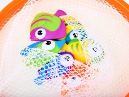 Set mrežica s šarenim ribicama obogatit će svaku kupku. Plastična mrežica s malim očima omogućuje vam da smišljate razne vodene priče, lovite svoje igračke, igrate se s njima.