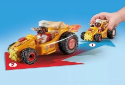 Vozilo ima mjesto za PLAYMOBIL figuricu i zahvaljujući praktičnom pull-back pogonu jamči trenutačnu zabavu bez baterija. Veselu karoseriju moguće je dodatno ukrasiti raznim dodacima, pa djeca mogu prilagoditi svoj trkaći stroj baš po svojoj mjeri.