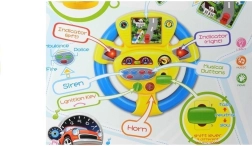 Ovaj interaktivni volan za djecu nudi mnoštvo funkcija koje na zabavan način razvijaju vještine i osjetila. Okretanjem volana autić se na zaslonu kreće cestom, uključuju se pokazivači smjera, a pritiskom na tipke aktiviraju se truba i različiti zvučni efekti. Zahvaljujući izrazitoj žuto–tirkiznoj kombinaciji, igračka je djeci vrlo privlačna.