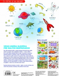 Otkrijte veliku slikovnu knjigu koja prati djecu kroz cijelo predškolsko razdoblje. Podržava razvoj rječnika, prepoznavanje boja, prvo čitanje i pisanje tiskanim slovima. Knjiga nudi vesele ilustracije, mnogo igara za vježbanje pamćenja te dodatno sadrži engleske prijevode riječi. Riječ je o slovačkom izdanju knjige.