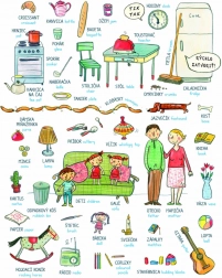 Sadržaj je osmišljen tako da raste s djetetom: najmlađi vježbaju boje i pojmove, starija djeca savladavaju prvo čitanje i pisanje tiskanim slovima. Uključene su i ideje za igre za trening kratkoročne memorije i pripovijedanje priča prema slikama – mašti nema granica. Bonus predstavljaju engleski prijevodi riječi, tako da učenje može pokračovat i na stranom jeziku. Riječ je o slovačkom izdanju knjige.