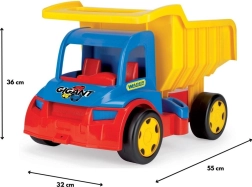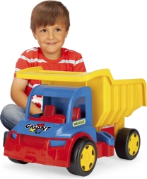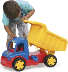 Dječja Kipera Gigant 55 cm je veliki teretni automobil duljine 55 cm, kojeg će djeca obožavati zbog mogućnosti utovara, istovara i prijevoza svojih omiljenih igračaka. Opremljen je prednjim i stražnjim rukohvatom za prikolicu ili vučnu liniju. Kipera s udobnom ručkom omogućava jednostavno upravljanje i beskonačne mogućnosti igre. Sa nosivošću do 150 kg, kipera je idealna i za guralice – najmlađi mogu sjediti na igračci i gurati se nogama. Robusna konstrukcija osigurava otpornost, pa je idealna za igru na otvorenom i u zatvorenom.