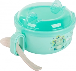 Čvrsto prianjajući poklopac štiti obrok i sprječava prolijevanje, idealno za putovanja i kolica. U kompletu je praktična žličica za udobno hranjenje.
