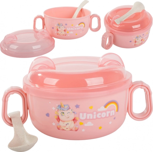 Dječja zdjelica s poklopcem i žličicom 600 ml s ručkama