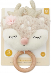Zahvaljujući vezicama igračku brzo pričvrstite na krevetić, kolica ili autosjedalicu. Drveni prsten služi za udobno navijanje glazbenog mehanizma.