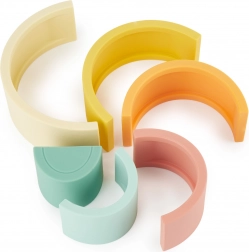 Silikonska sklopiva duga BIECO Tropical Vibes donosi djeci kreativnu i sigurnu igru. Mek, ali čvrst materijal od 100% silikona ugodan je na dodir, izdržljiv i jednostavan za održavanje – dovoljni su voda i blagi sapun. Pastelne boje pozivaju na slaganje, razvrstavanje i balansne aktivnosti.