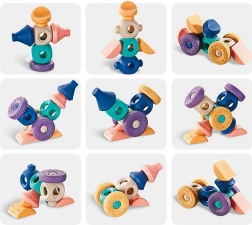 Dijelovi se mogu međusobno povezivati i slagati u različite konstrukcije – od tornjeva do zabavnih vozila. Igra potiče maštu i finu motoriku.