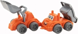 Zahvaljujući kvalitetnoj plastici i čvrstoj izradi, igračke su otporne na svakodnevnu upotrebu. Set sadrži utovarivač s funkcionalnom kašikom i kipersko vozilo s koritom, koji se odlično nadopunjuju pri igri na gradilištu.