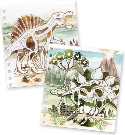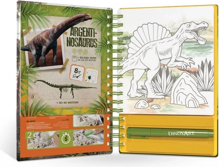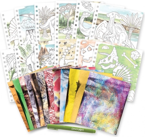 Otkrijte kreativni set za male paleontologe: foliovne bojanke s motivima dinosaura od DinosArt. Djeca uz pomoć posebne olovke lako prenose sjajne folio efekte na 12 predložaka i stvaraju zadivljujuće slike. U kompletu su upute korak po korak i zanimljive informacije o dinosaurima – idealan dar za kreativnu djecu.