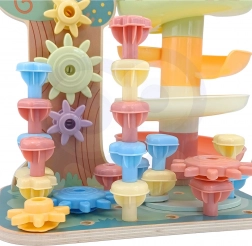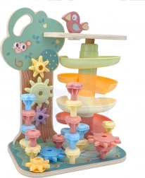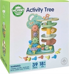Aktivno Stablo WOOPIE GREEN pažljivo je osmišljen edukativni set, koji kombinira čak četiri različite aktivnosti, potičući svestrani razvoj djeteta već od 18 mjeseci. Sadrži šarenu tobogansku kulu, senzoričke zupčanike, udaranje štapića i kreativno navlačenje – sve u prekrasnoj, pastelnim izvedbi i osigurano sigurnim, izdržljivim materijalima.