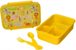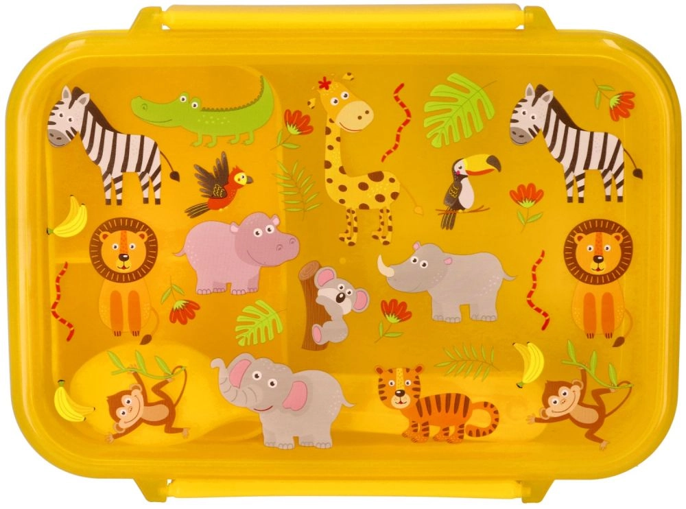 Veseli žuti lunch box s ilustracijama lava, zebre, žirafe i majmunčića uljepšat će svaku dječju užinu. Kompaktne dimenzije 18 × 13 × 6 cm lako stanu u školsku torbu, a ipak nude dovoljno mjesta za sendvič, voće i male grickalice. Zahvaljujući kvalitetnom materijalu bez BPA, kutija je sigurna za svakodnevnu upotrebu.
