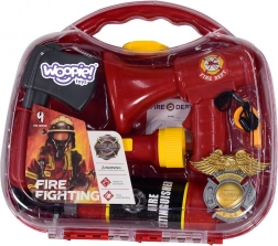 Vatrogasni kovčežić marke Woopie je san svakog malog vatrogasca! Uključuje svu potrebnu opremu za igru vatrogasca, kao što su vatrogasni aparat, megafon, ili značka.