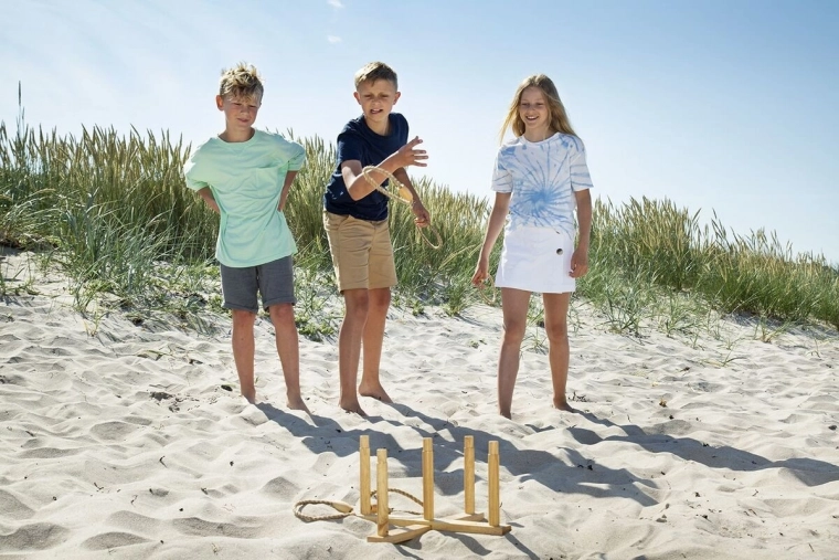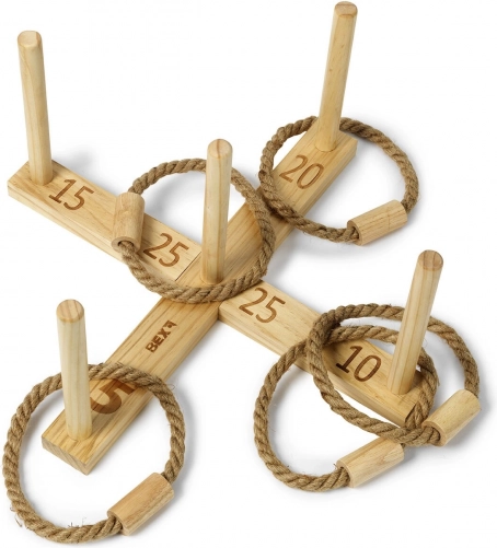 Igra bacanja kolutova RING TOSS FAMILY idealna je za zabavu na otvorenom i trening preciznosti. Kolutovi od čvrstog užeta i stabilna drvena baza s numeriranim klinovima jamče fer bodovanje i sate natjecanja za djecu i odrasle. Zahvaljujući kompaktnim dimenzijama lako je ponesete u vrt, na plažu ili na izlet.